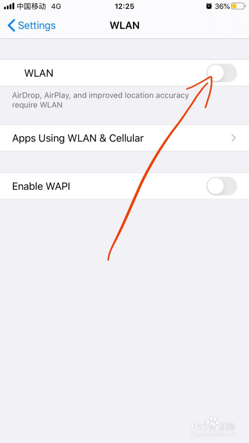 点击打开“WLAN”按钮开关。