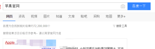 第一:百度浏览器搜刮【苹果官网】进入。
