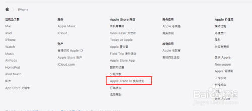 第二:下拉官网底部点击【apple trade in 换购打算】选项。