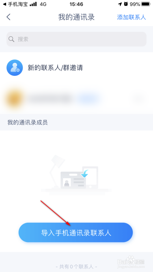 3.然后,点击下【导入手机通信录联系人】按钮。