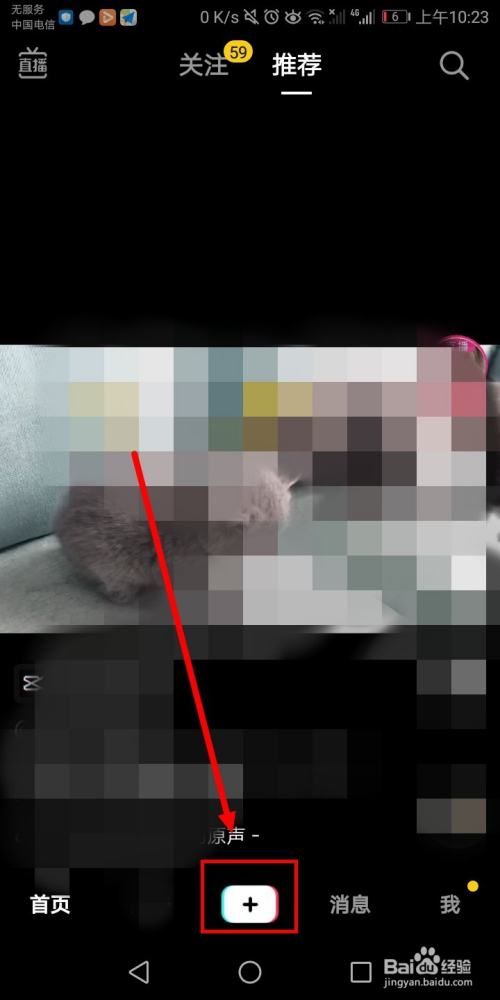 第二步,在抖音短视频中点击界面的+号发布作品,如下图