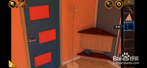 点击左前方的房门,将平台上面的三角块拾取起来。