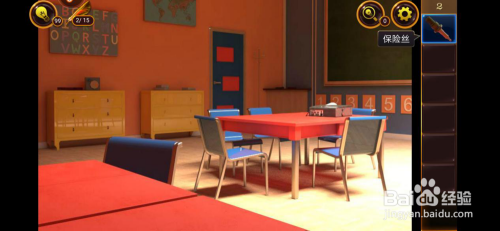 按照上面的图形打开左面的保险箱,掏出里面的钥匙,操纵钥匙打开房门,本关的使命就完当作了。