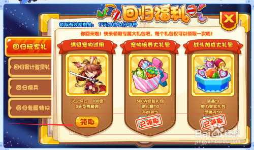 领取福利,含大量的经验,果实等等,还赠予宠物