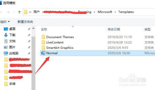 打开Word选项对话框后,点击左侧列表中的“加载项”,然后在右侧下方“办理”处选择“模板”,最后点击右侧的“转到”,如图。