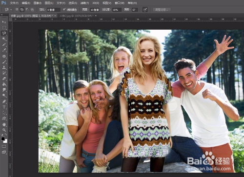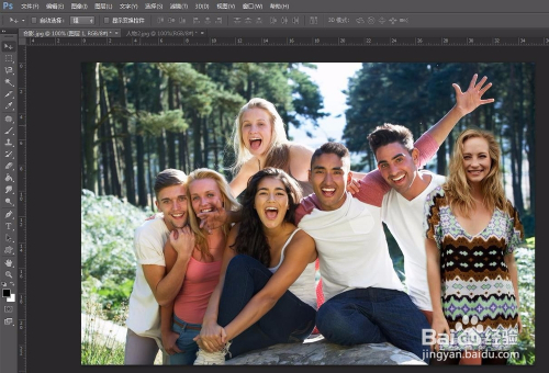 第一步:在ps中,按Ctrl+O快捷键,弹出打开对话框,按住Ctrl键同时选中合影素材和人物素材图片,并单击“打开”按钮。