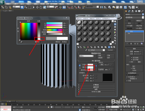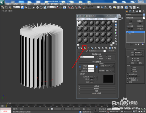 点击【材质编纂器】,按图示设置一个白色材质球并附加给模子即可。这样我们的双圆扭曲二十九角星柱就建造完当作了,赶紧尝尝吧!