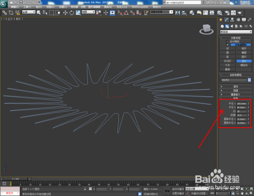 点击【建立】-【图形】-【星形】,按图示对双圆扭曲二十九角星参数进行设置,绘制出一个双圆扭曲二十九角星图案;