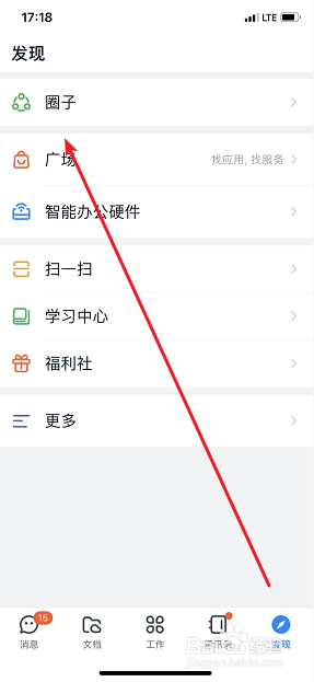 在发现页,点击【圈子】