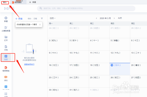(3)然后选定日历上需要设置的日期,进行双击,再选择【待办】;