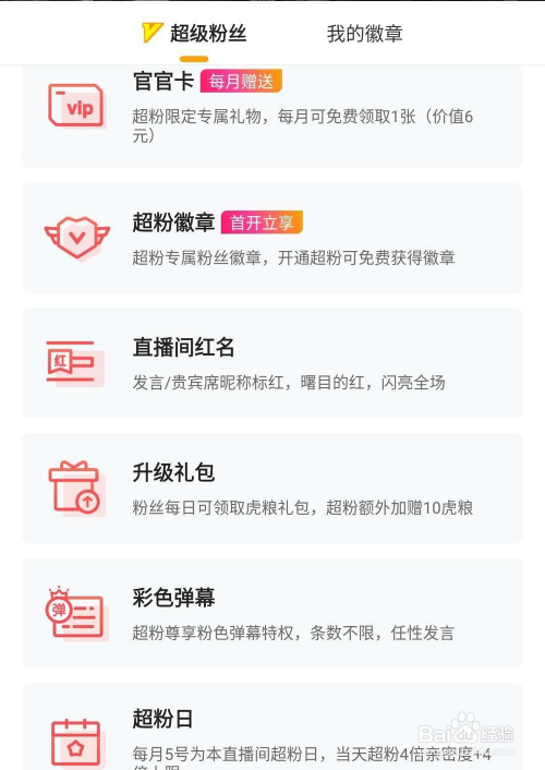 开通之后,就会有超等粉丝的专属福利