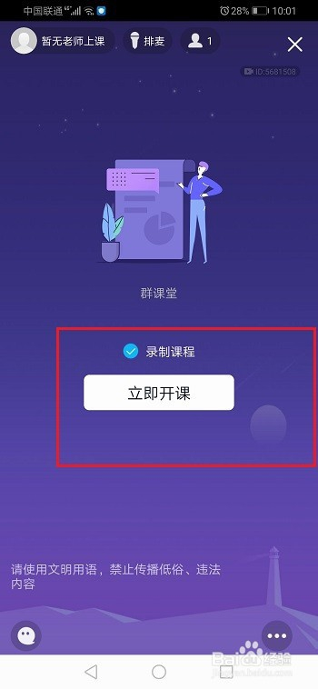 第一步手机上打开qq群讲堂,点击当即开课,如下图所示: