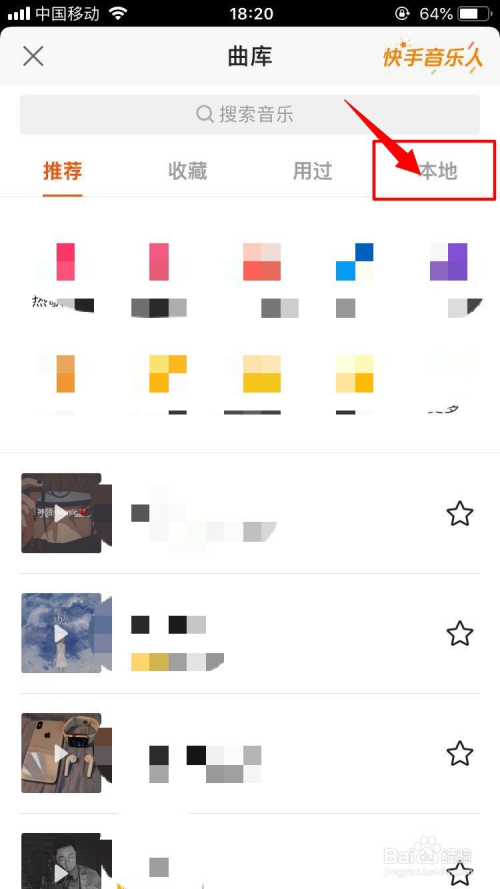 选择曲库后,点击“当地”