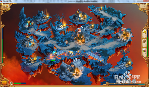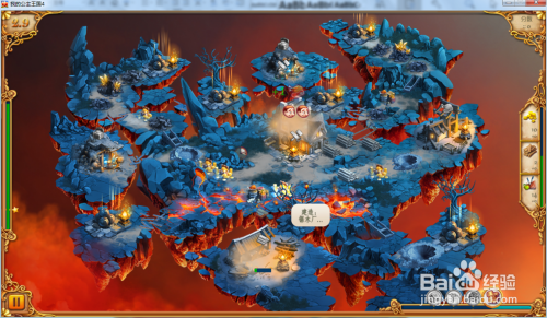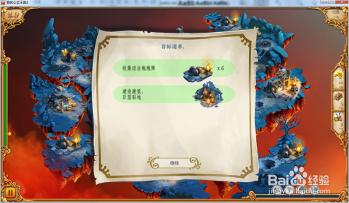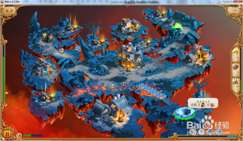 进级我们的营地达到巨型驻地,然后收集右面的炮炮弹,再操纵工人修复下方的熔岩。