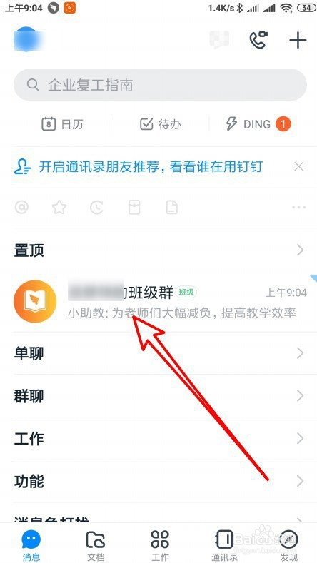 然后在打开的页面中点击钉钉班级群的菜单项。