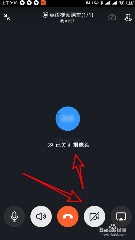 6、然后在打开的视频会议页面中点击摄像头的按钮,这时就可以在视频会议时封闭摄像头了。