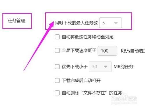 找到【使命办理】,点击【同时下载的最大使命数】。我们可以看到此刻是5.