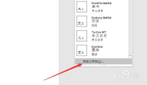 下方弹出列表后,选择列表最下方“自界说字体”一栏。