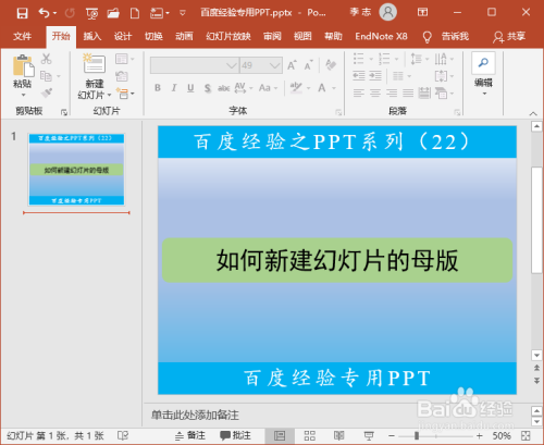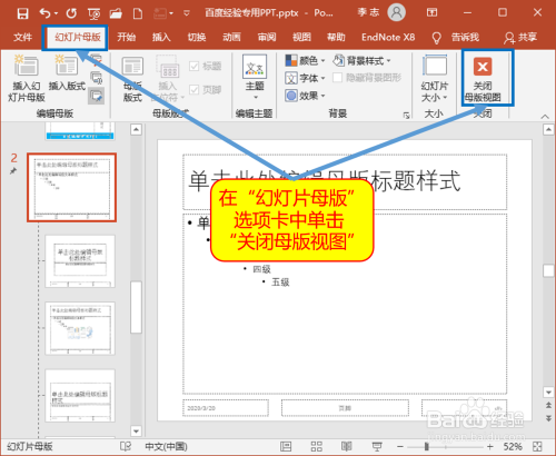 在“幻灯片母版”选项卡中,封闭幻灯片母版视图。