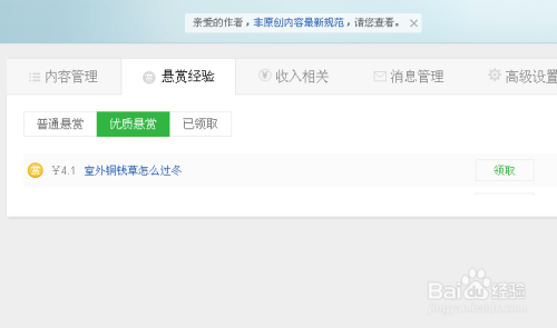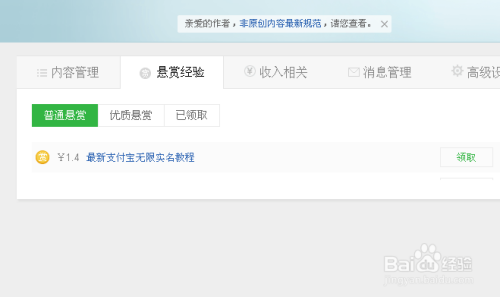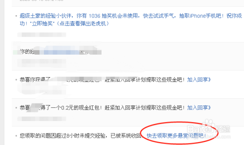 如下图所示,找到之前收回的赏格经验提醒动静,点击开去领取更多赏格问题吧。