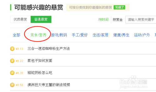 可以肆意选择比力喜好和擅长的分类,好比第一个美食/营养,只要点一下,就可查阅此分类下的标题问题了。