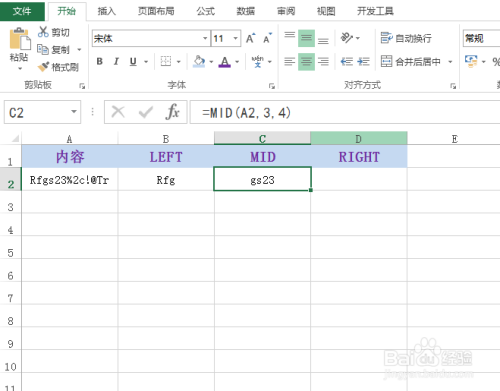 此中,公式的意思为:对单位格A2的内容,从第3个位置起头,提取4个位置的数据内容。