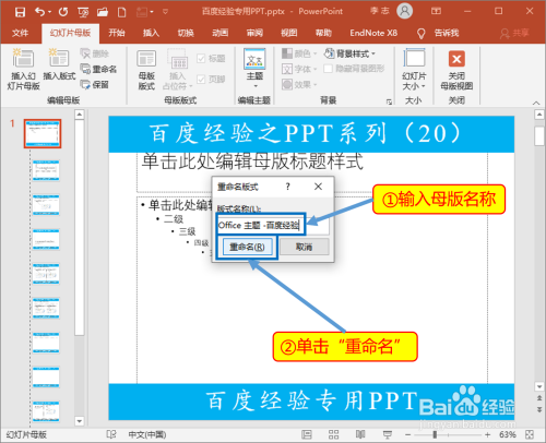 输入母版的名称,单击“重定名”。