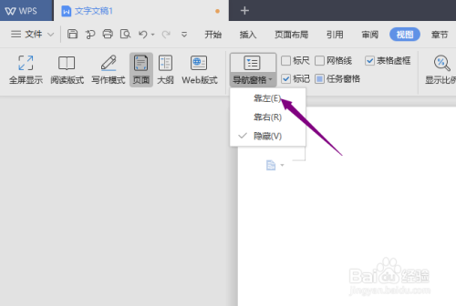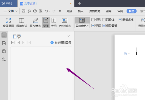 1、打开wps文字,可以看到导航窗口在右边。