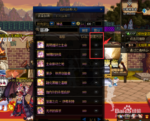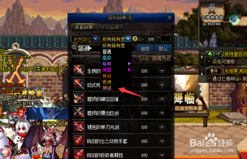在“装备辞典”栏面前目今,将“所有罕见度”点选为“神话”。