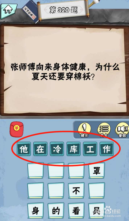 在脑子急转弯达人Lv4科学怪人第320关内,张师傅标的目的来身体健康,可是却在炎天穿棉袄是为什么。