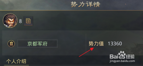 我们就来到了势力详情界面。在势力详情界面里,我们可以看见别人的势力值。这里,这小我的势力值是13360。