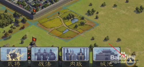 我们来到率土之滨游戏后,点击游戏界面下方城池右方的小三角形。如下图所示。