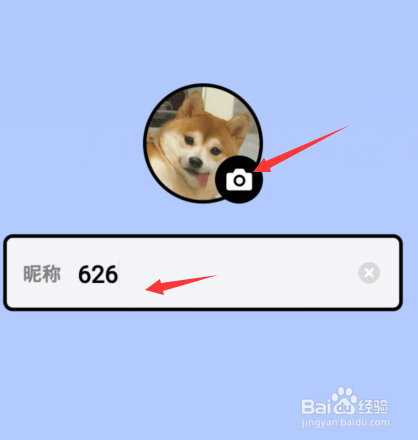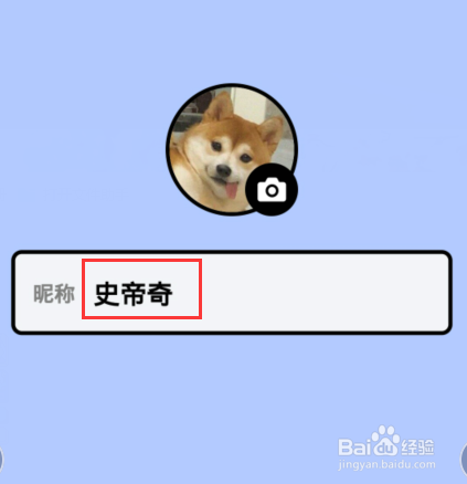 第四:昵称点窜完毕点击头像下边的【摄像机按钮】。