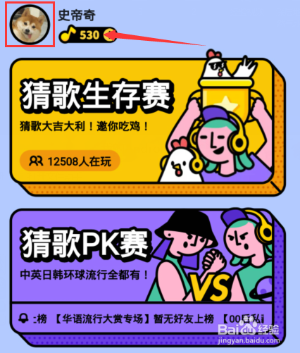 第一:打开猜歌星球客户端点击左上角【头像】。