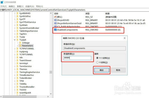 将其定名为:DisabledComponents,数值数据改为:ffffffff,