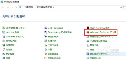 在节制面板点击【Windows Defender防火墙】