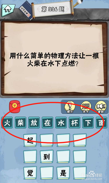在脑子急转弯达人Lv4科学怪人第336关内,提问用什么简单的物理方式可以让一根火柴在水下点燃。
