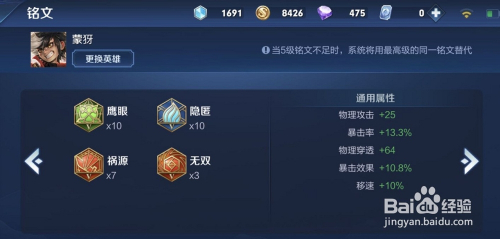 首先,铭文方面我们选择:鹰眼*10,隐匿*10,祸源*7,无双*3。这样可以包管我们前期可以或许顺遂渡过。