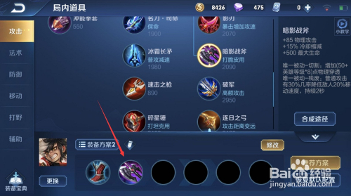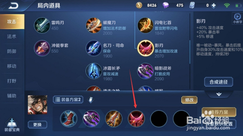 然后,到了中期,为了填补我们的危险不足,我们选择“影刃”,供给巨额攻速加当作。
