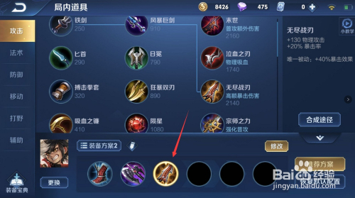 接下来,蒙犽需要暴击,我们选择“无尽战刃”,可以在打人的时辰供给续航能力。
