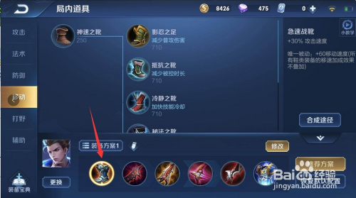 然后第一件选择攻速鞋,可以供给移速,便利走位,