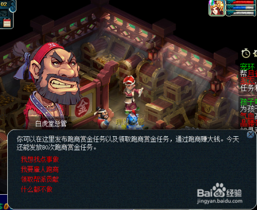 点击白虎堂总管后弹出的对话框中,选择第二项的赏金使命。
