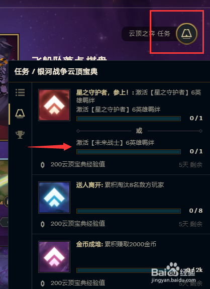 第五:点击右上角【云顶之奕】使命完当作对局获得奖励。
