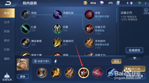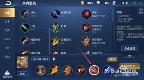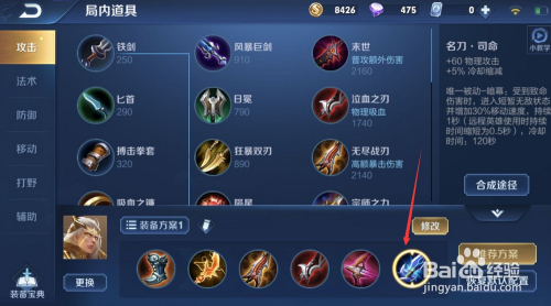 最后一件,我们选择“名刀”,可以包管团战中不被直接秒失落。