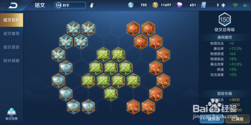 弓手铭文,一般是五个夺萃、五个打猎、三个无双、七个祸源、十个鹰眼