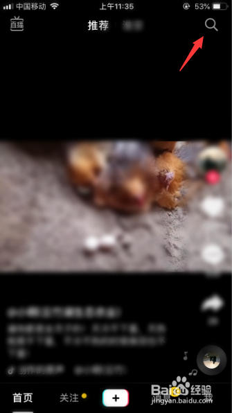 打开抖音app,进入本家儿页,点击右上角处的“搜刮”。