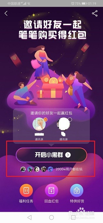 第五步我们可以看一下小黑群弄法,邀请老友满10人可以获得红包,分享指定的物品,采办后可以获得红包,按照需要利用,如下图所示:
