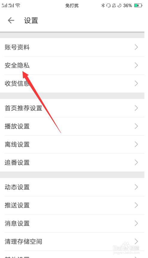 3、点击平安隐私