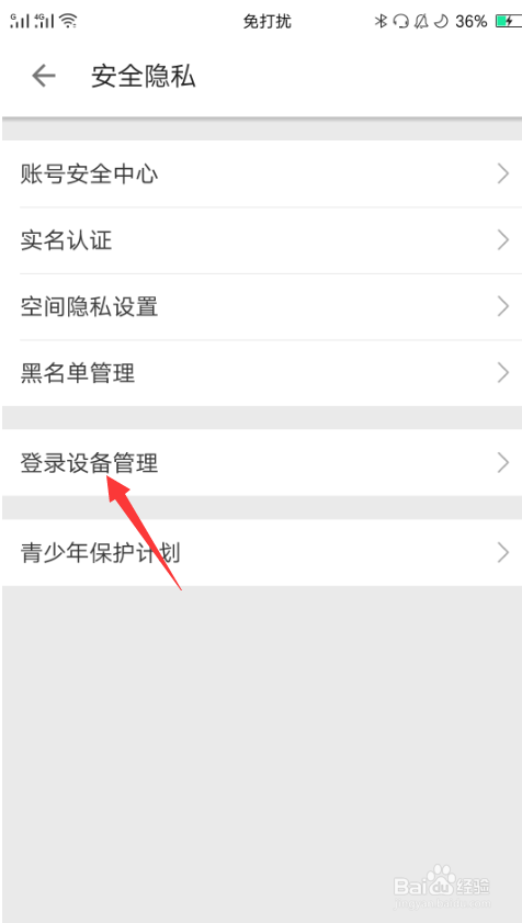 进入平安隐私界面后,点击“登录设备办理”。
