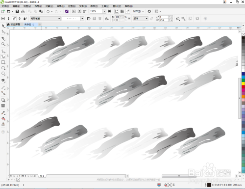 按图示在作图区域绘制出一条曲线路径,完当作灰色系笔触喷涂结果的建造。